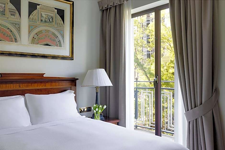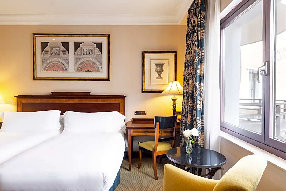 The elegant premium club rooms feature both contemporary and classical design and are decorated in marble. They have a spacious work desk and coffee maker. It offers views of Paseo de la Castellana or the hotel garden.